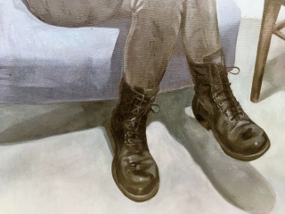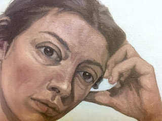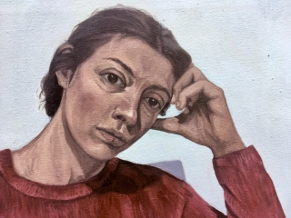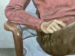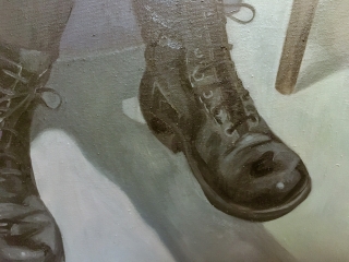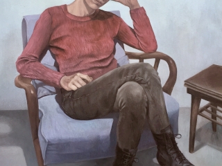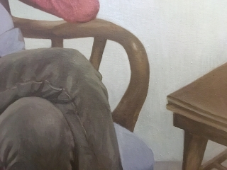 a character in this novel, who is invited to an artistic dinner, constantly outpours his irritation to the reader from a chair. i thought about my own problems with the art scene and talked about this with my artist friend ece eldek who modeled for the painting.